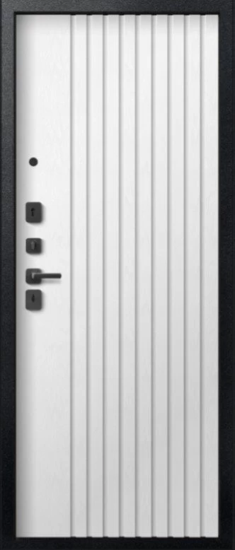 Надежная входная Дверь V-15 Черный муар + Бетон темный - Софт ясень белый премиум класса по цене 43 463 руб. Большая толщина стали защитит от проникновения в ваш дом, квартиру или коттедж. Используется очень качественная фурнитура: замки, цилиндры, ручки, защелки. Покрытие и отделка двери изготовлено под внимательным контролем производителя. Дверь имеет долгий срок службы и гарантию.